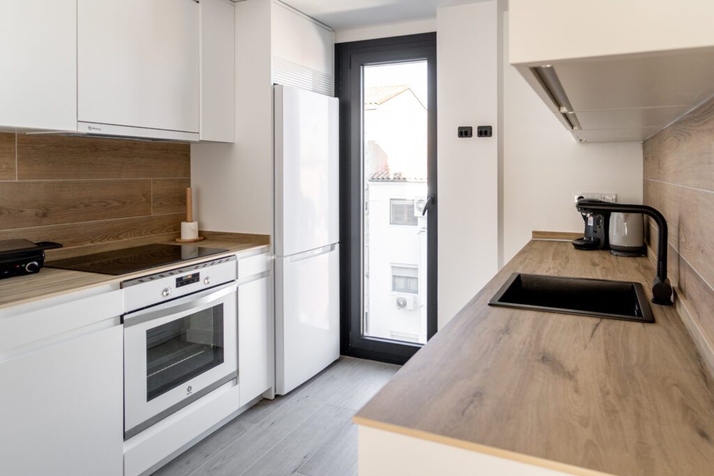 Edificio prosumidor de energía renovable con una instalación de autoconsumo en su azotea, dispone de sistema de calefacción y aire acondicionado por Aerotermia y suelo radiante para el máximo confort de sus huéspedes. Sus modernos apartamentos disponen de espacios de trabajo en todas las habitaciones y Wifi de alta velocidad, con amplias zonas de estar que integran cocinas completamente equipadas para que saques el chef que hay en ti. La mayor parte de ellos tienen 2 baños y acceso a terrazas privadas.